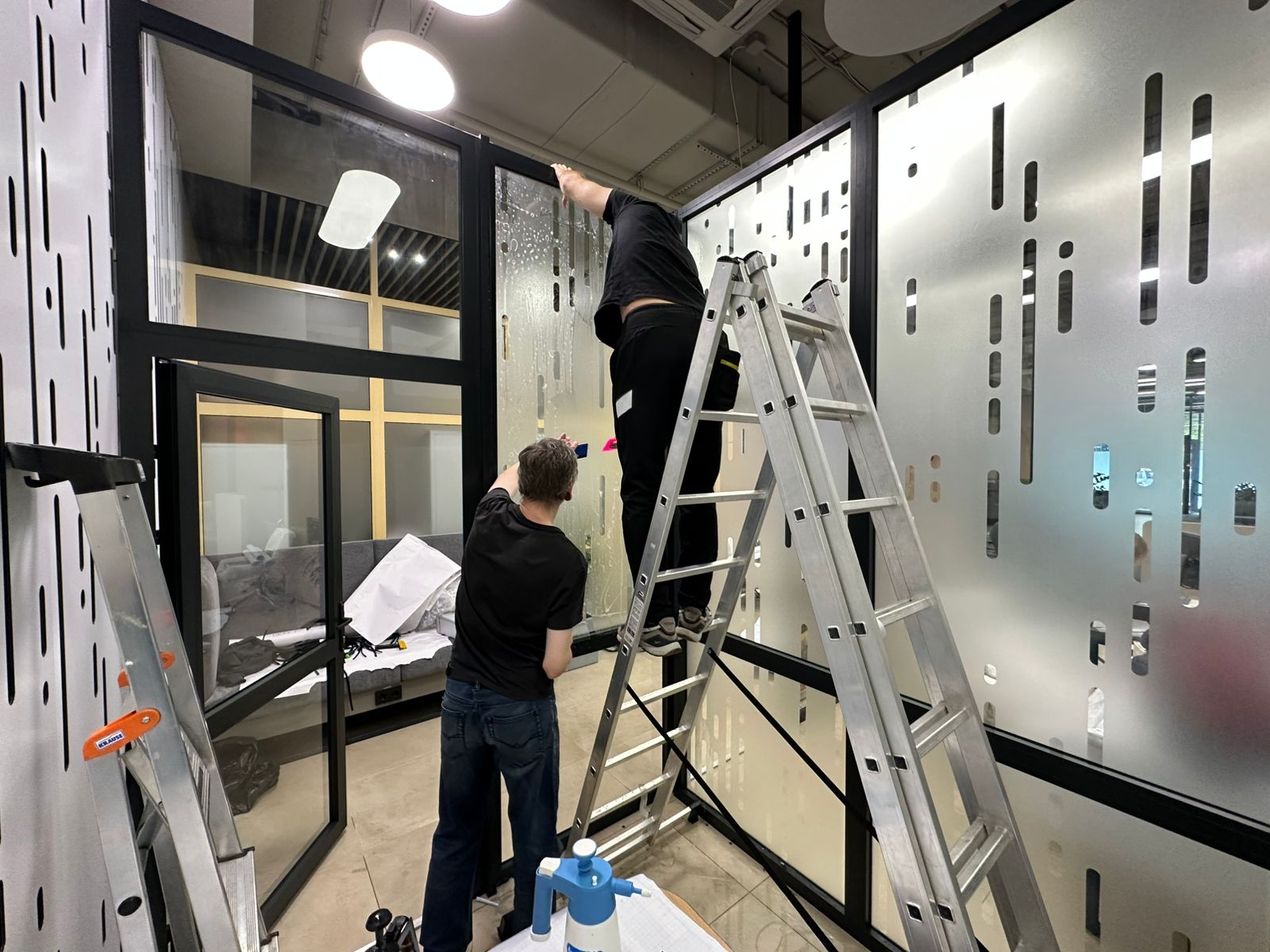 • Монтаж – профессиональная оклейка окон, фасадов, перегородок и мебели.