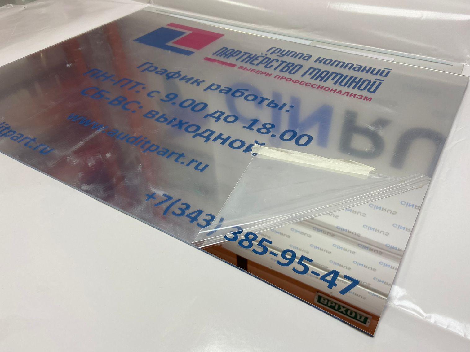 Зеркальная табличка с гравировкой и УФ печатью
